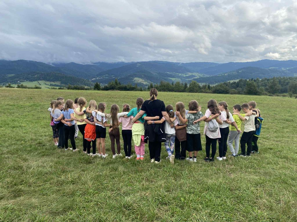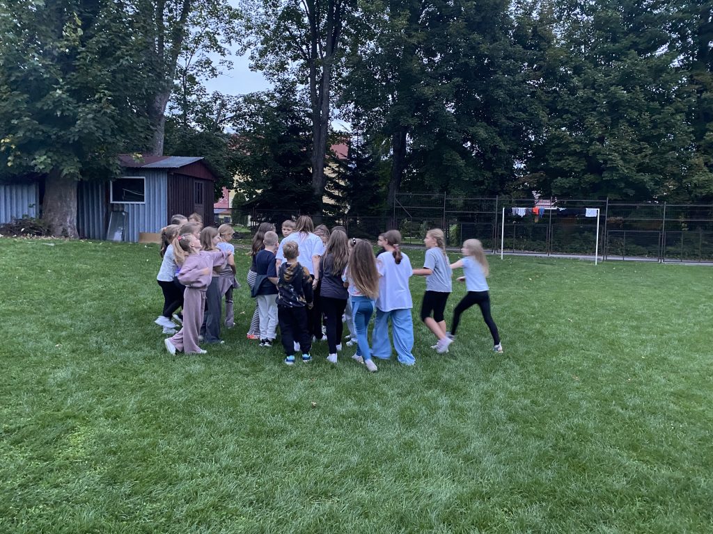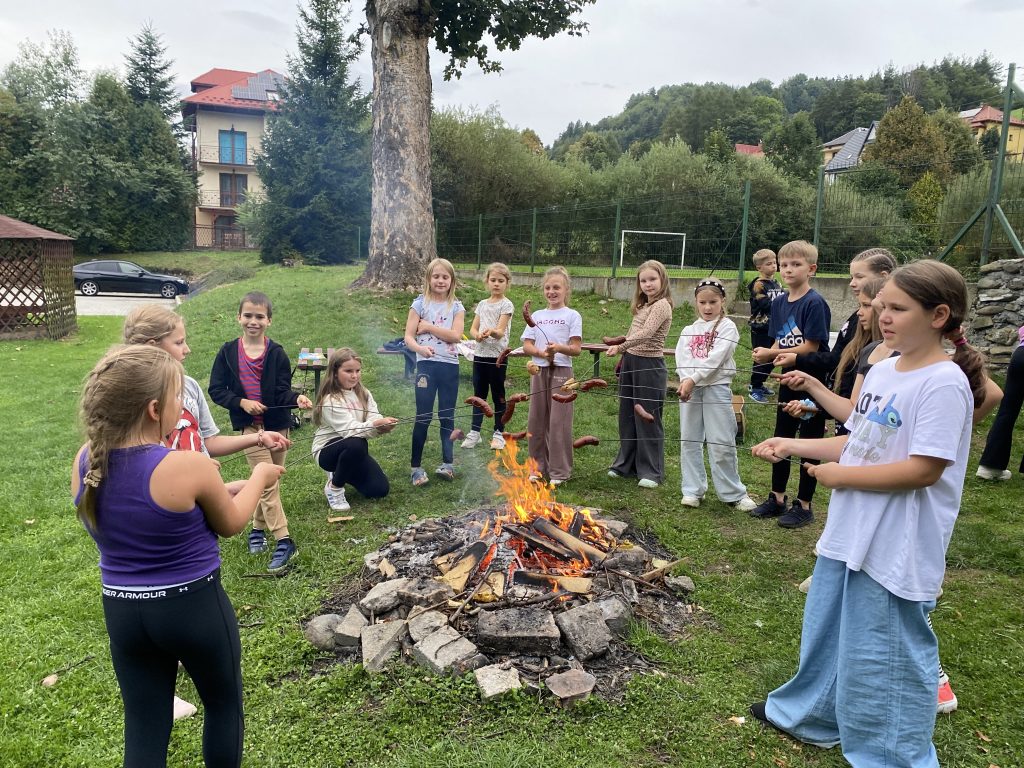 Dzieciaczki wraz z Panią Agatką i Agnieszką już pierwszego dnia zobaczyły Park Wodzickich w Porębie Wielkiej , popołudniu odbyły się gry i zabawy na świeżym powietrzu, a wieczorkiem spędzili czas przy ognisku i smacznej kiełbasce ![]()