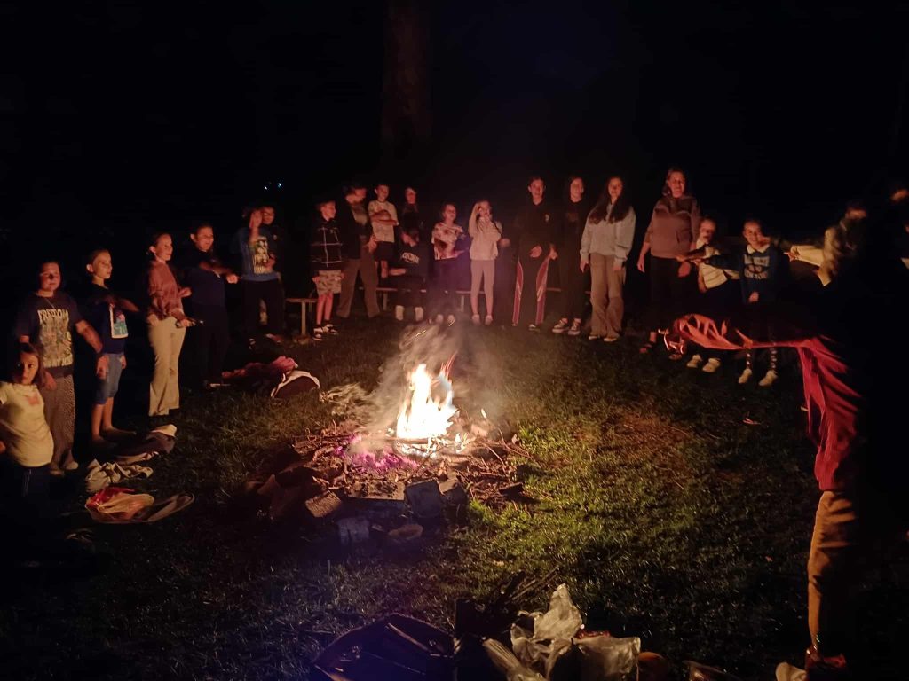 Wieczorkiem zapalili ognisko przy którym pięknie śpiewali i biesiadowali .
